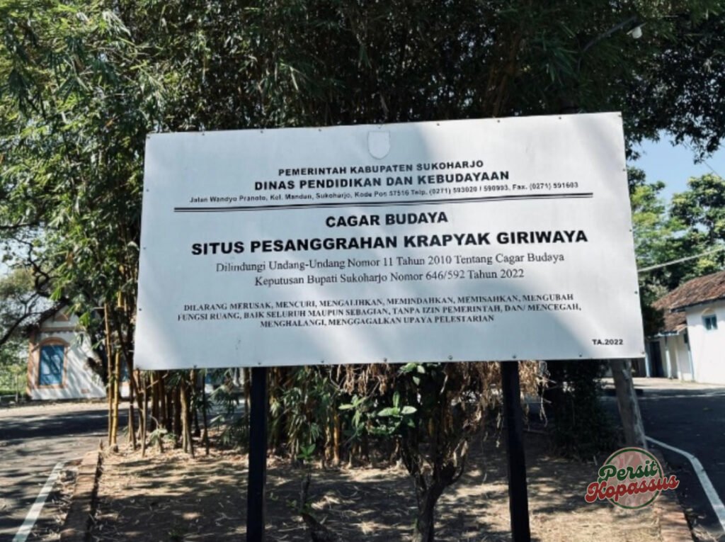 Pesanggrahan ini terdapat di dalam area wilayah Grup 2 Kopassus. Pemerintah Kabupaten Sukoharjo, melalui Dinas Pendidikan dan Kebudayaan telah menetapkan Pesanggrahan ini sebagai Cagar Budaya Situs Pesanggrahan Krapyak Giriwara sesuai Keputusan Bupati Sukoharjo Nomor 646/592 Tahun 2022. Hal ini telah meletakkan Pesanggarahan yang terdapat pada wilayah Grup 2 Kopassus sebagai Cagar Budaya yang dilindungi Undang-undang Nomor 11 Tahun 2010 Tentang Cagar Budaya.